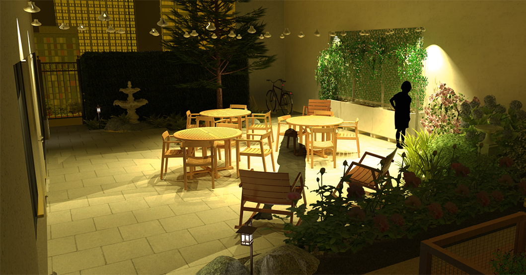 Because the garden space was previously inaccessible to all who want to participate in this adventure, we hired a designer to address this issue. The result is a beautiful plan by a talented, thoughtful designer that provides a dozen raised beds and accessible pathways covered with a material that accommodates walkers and wheelchairs. Water is provided to each spot so no lifting of heavy watering cans or dragging hoses to ensure their plots have adequate moisture. There is a paved patio, fountain and resident memorial rose garden in the common space where all residents can enjoy the ambience of this beautiful space.