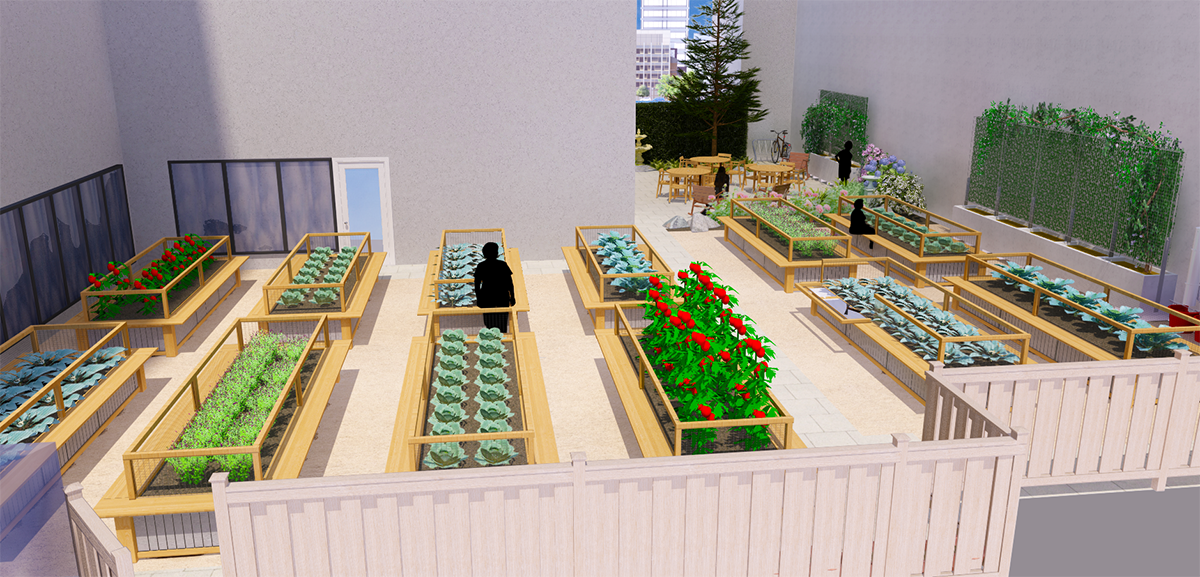 Because the garden space was previously inaccessible to all who want to participate in this adventure, we hired a designer to address this issue. The result is a beautiful plan by a talented, thoughtful designer that provides a dozen raised beds and accessible pathways covered with a material that accommodates walkers and wheelchairs. Water is provided to each spot so no lifting of heavy watering cans or dragging hoses to ensure their plots have adequate moisture. There is a paved patio, fountain and resident memorial rose garden in the common space where all residents can enjoy the ambience of this beautiful space.